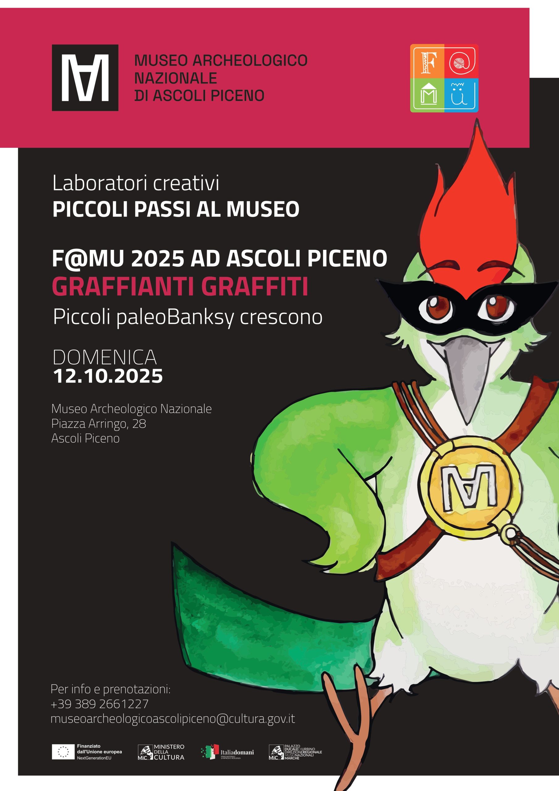 Domenica 12 ottobre il Museo Archeologico Nazionale di Ascoli Piceno partecipa alla Giornata Nazionale delle Famiglie al Museo (FaMu) con un appuntamento davvero speciale che inaugura la nuova stagione di “Piccoli Passi al Museo”, la serie di incontri dedicati ai più piccoli e alle loro famiglie, in programma ogni seconda domenica del mese.